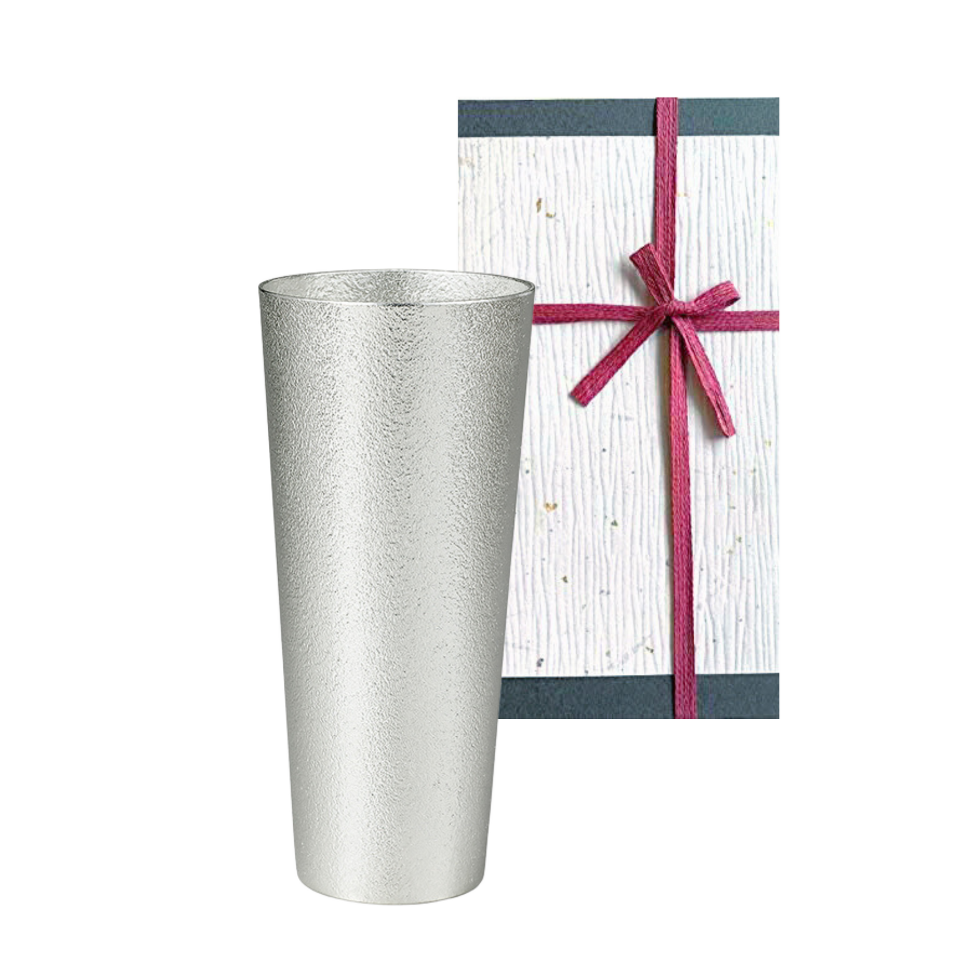 通常の錫製品は硬度を持たせるため他の金属を加えますが、能作では何も加えず、錫本来の持ち味を最大限に生かしました。どうぞ錫の持つやわらかな手触りも合わせてお楽しみください。桐箱入なので贈り物にもおすすめです。