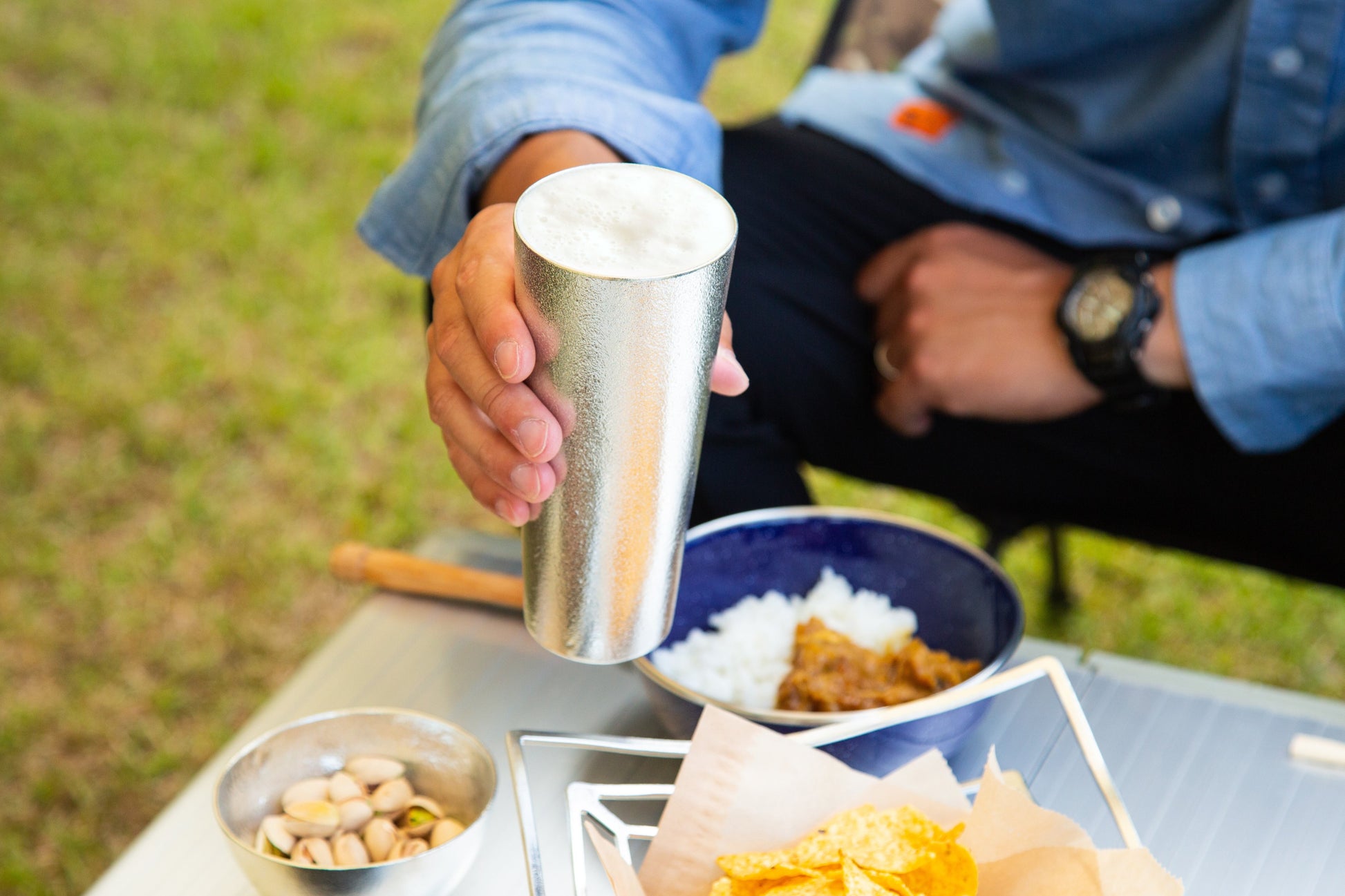 鋳物であるこのビアカップは、鋳込む際にできる梨地調の少しザラザラとした鋳肌により、ビールのクリーミーな泡立ちを作り出します。また、熱伝導率がよいので、冷蔵庫に1-2分入れるとキンキンに冷えて、ビールだけでなくアイスコーヒーやソフトドリンクなどいろいろな飲み物をお楽しみいただけます。
