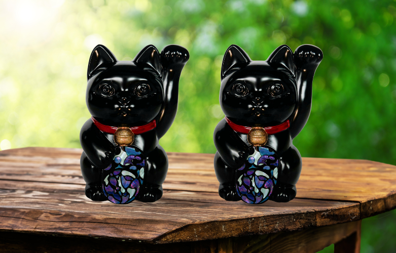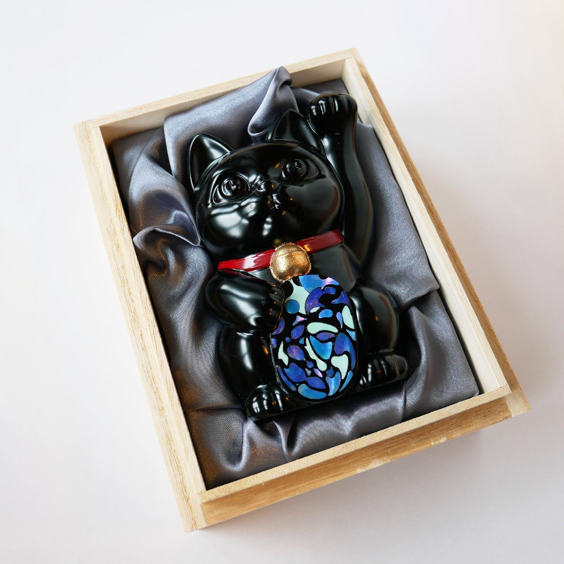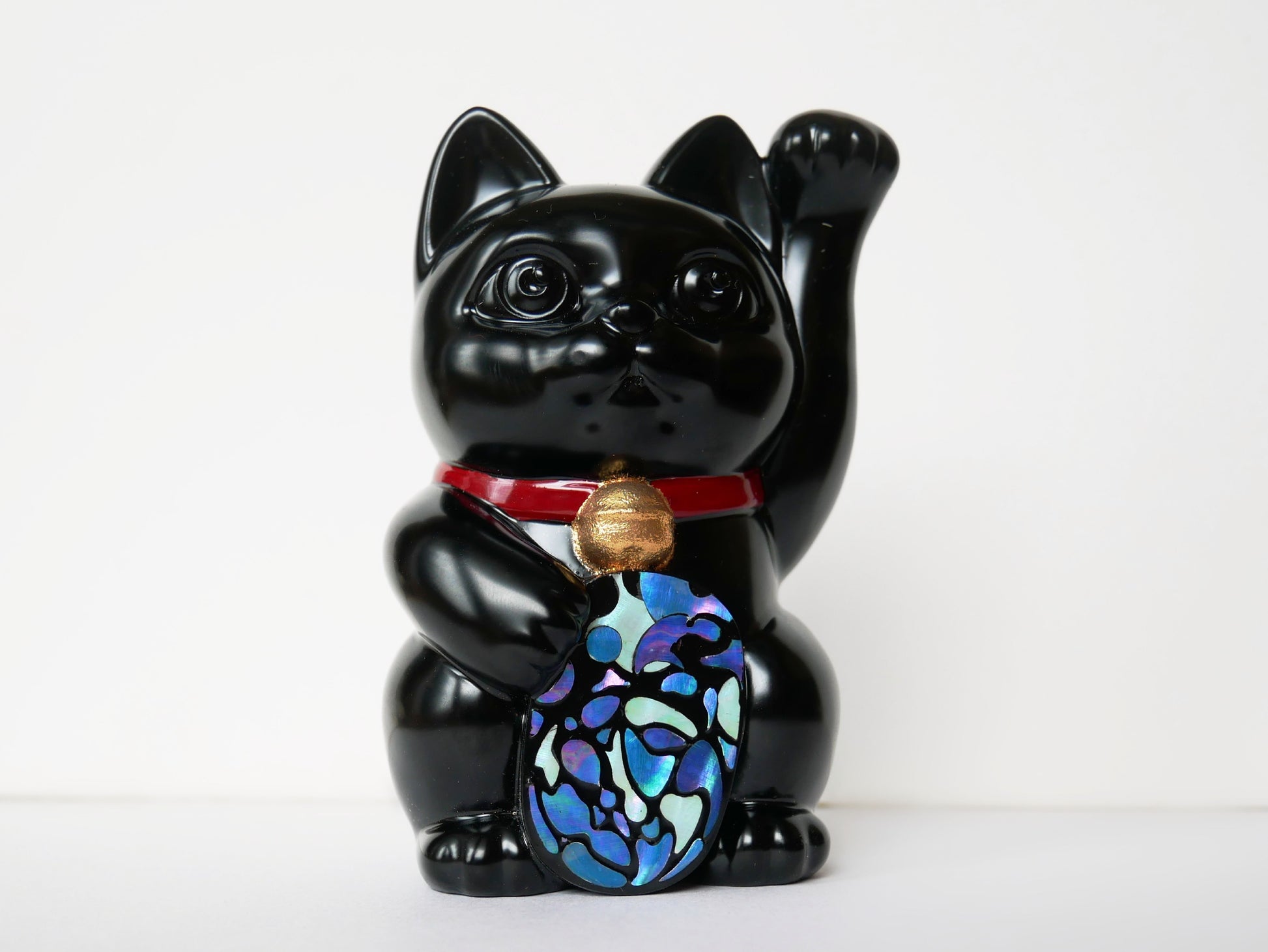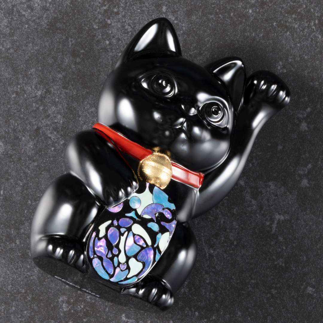 [Polka dots] and [Kuyoumon] use a technique called raden, in which thinly sliced mother-of-pearl is pasted on.