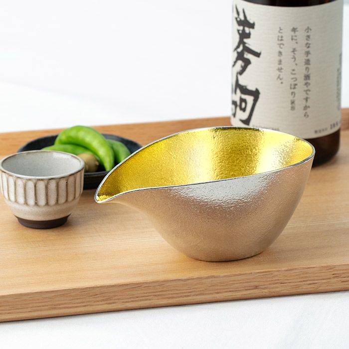 It is a katakuchi with a gorgeous impression with gold leaf pasted on the inside. The glossy gold leaf makes the sake even more appealing. It retains the flavor of sake and is perfect for daiginjo sake, which is especially preferred as a cold sake. Because it is made of 100% tin, it is soft and not suitable for machine work.