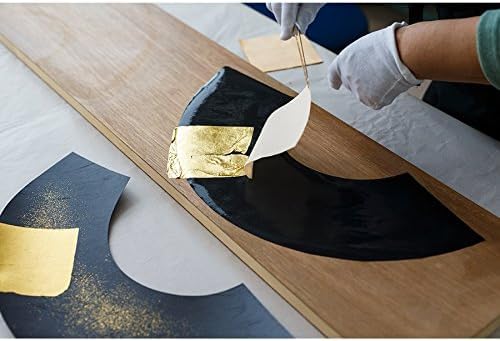 一点一点、膠(にかわ)と礬水(どうさ)で仕立てました。箔の自然に割れる表情や、薄さ、柔らかさなどの特性を活かし、ひとつひとつ丁寧に手作りで仕上げた金沢箔の表情や色合いが異なる扇子です。