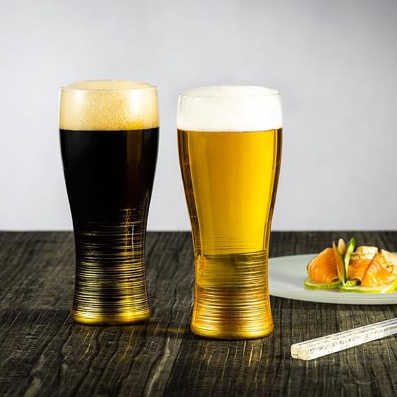 幾重にも重なる金箔の筋が、家飲み時間に華を添えます。上にいくに従って儚く消えていく金箔ならではの千筋は職人が一つひとつ手作業で施しています。くちつぼまり形状が、ビールの「泡もち」を良くし、コクと旨みを逃すことなく楽しめるビール専用のグラスです。