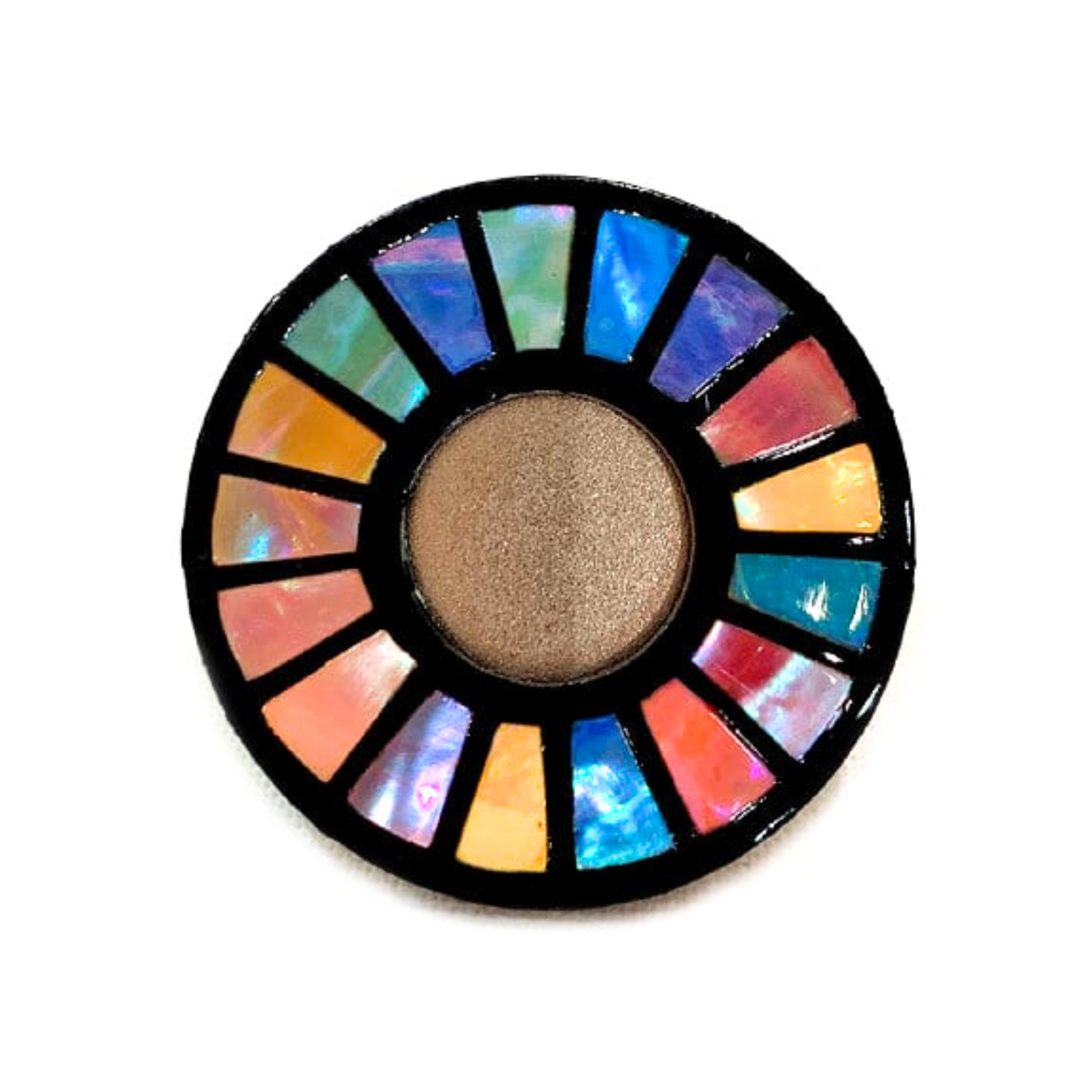 富山県高岡市の伝統工芸である高岡漆器の『螺鈿(らでん)』の技を用いたSDGsバッジです。 螺鈿が様々に光を反射しキラキラ輝きます。 カラフルな色合いは、付けるだけでファッションのポイントになります。