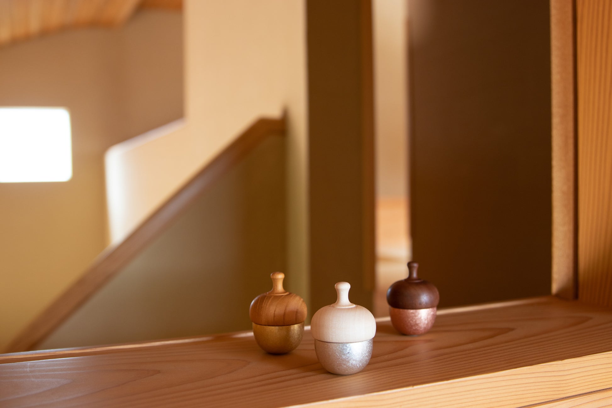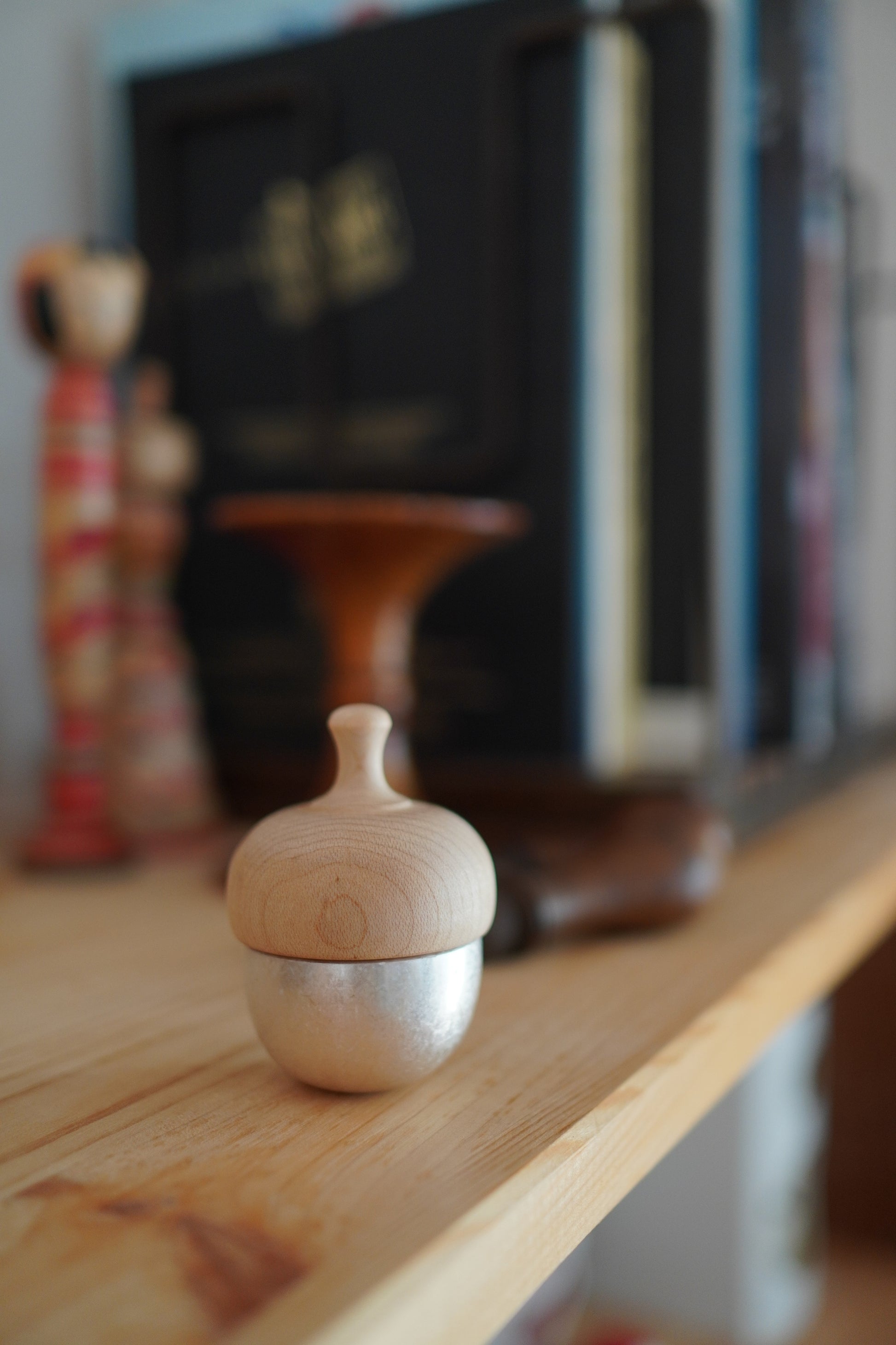 まるく柔らかな曲線を描く癒しと祈りの道具たち。まわりを森のように優しい空気で満たします。振子で奏でるどんぐりんの澄んだ音色もあなたの心を優しくします。