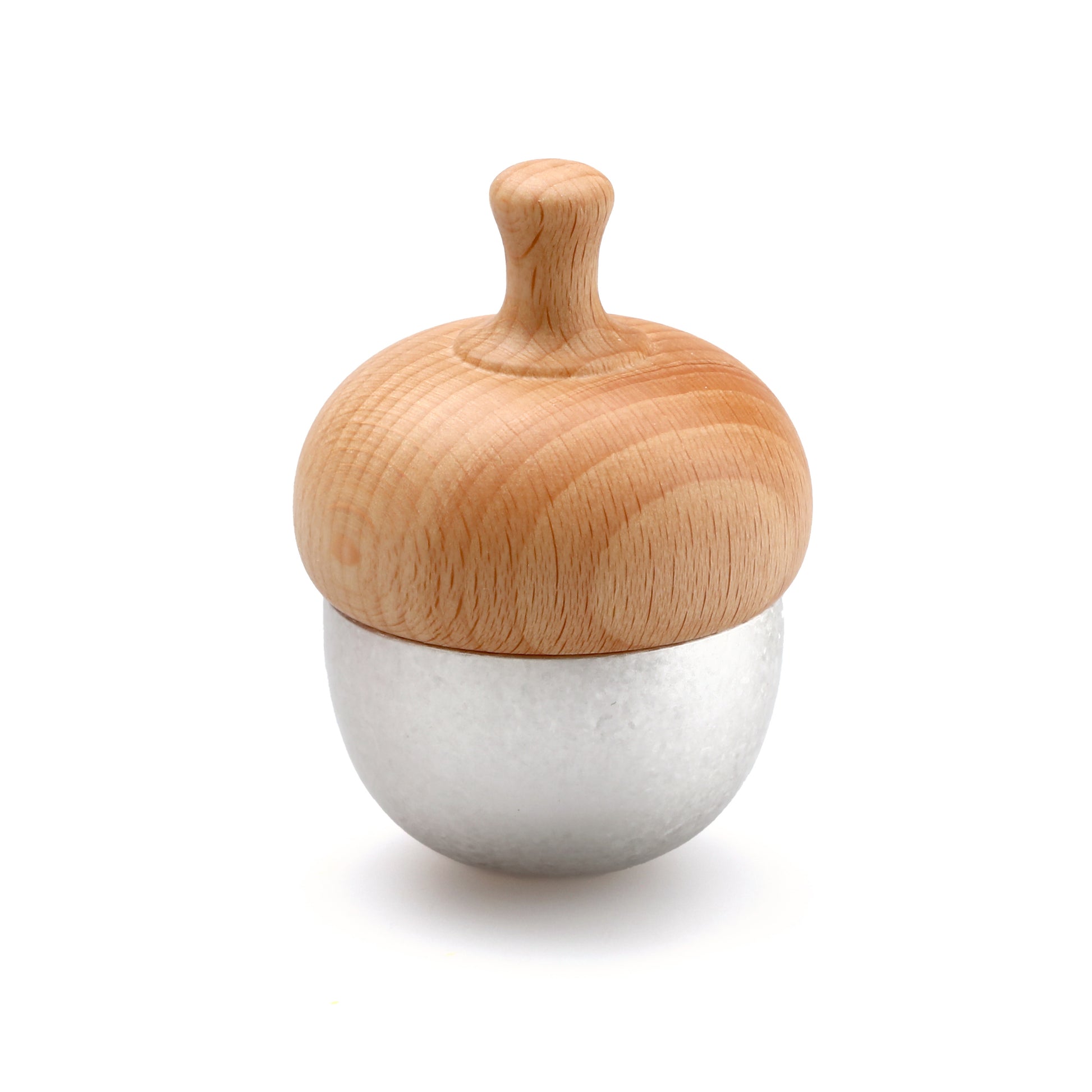 どんぐりの中にしまわれた振り子でおりんを鳴らします。(特許出願中)