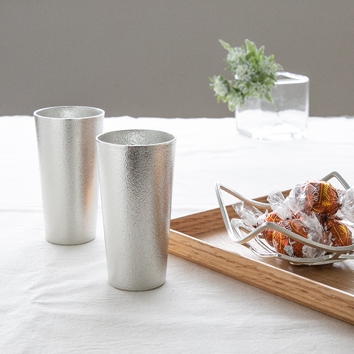 通常の錫製品は硬度を持たせるため他の金属を加えますが、能作では何も加えず、錫本来の持ち味を最大限に生かしました。どうぞ錫の持つやわらかな手触りも合わせてお楽しみください。贈り物にもおすすめです。