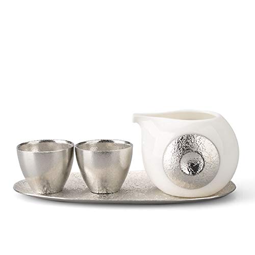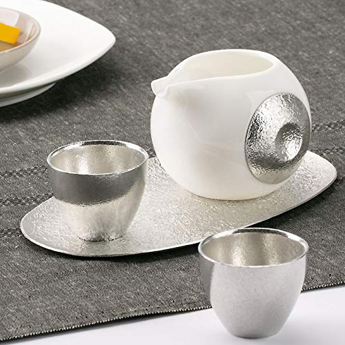 【サイズ】 片口:約H6.7cm W8.3 D9.3 約200cc ぐい呑:約H3.7 φ5 45cc 皿:約H0.7 W19.3 D11 錫 箱サイズ 約H8.2 W23.6 D23.6 箱入重量 約930g