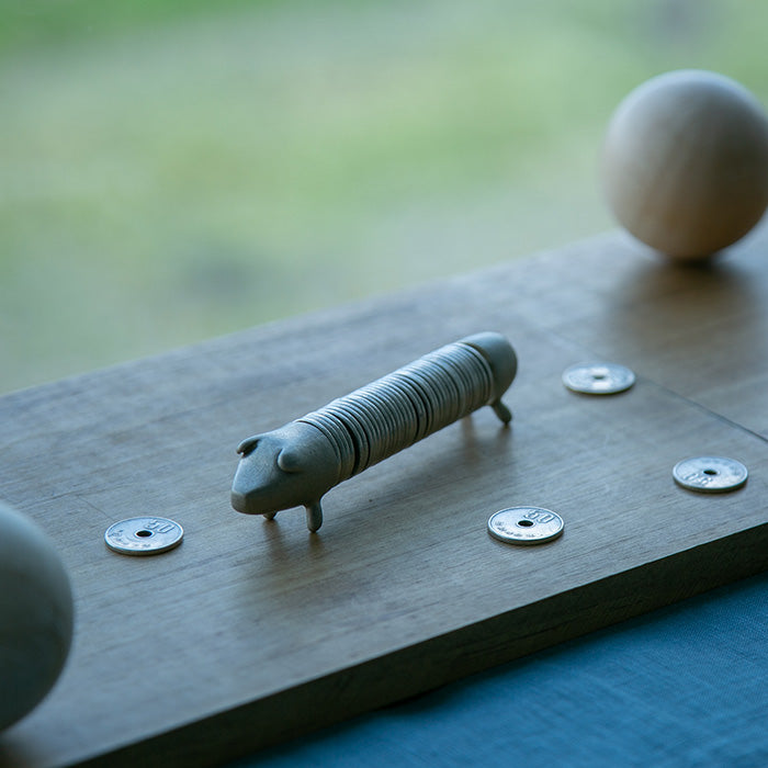 頭とおしりは50円玉と同じ白銅製で、50円玉をためることで一頭の豚さんが出来上がります。将来の為になるような大金をためることはできませんが、ご縁を蓄えながら、日々の生活を少し楽しくしてくれます。