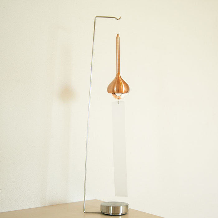 スタンドフックに風鈴を掛けるだけの手軽な風鈴スタンドです。 シンプルなデザインは、使う風鈴を選びません。 土台底面の穴にフックを差し込んでお使いください。