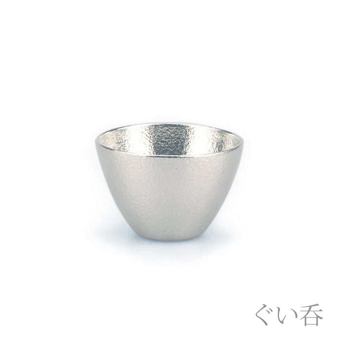抗菌性があり食器としても安心してお使いいただける錫製のぐい呑です。一つ一つ職人が手作業で仕上げています。 熱伝導率が高く器自体が熱くなるため、冷酒やぬる燗などにご利用ください。