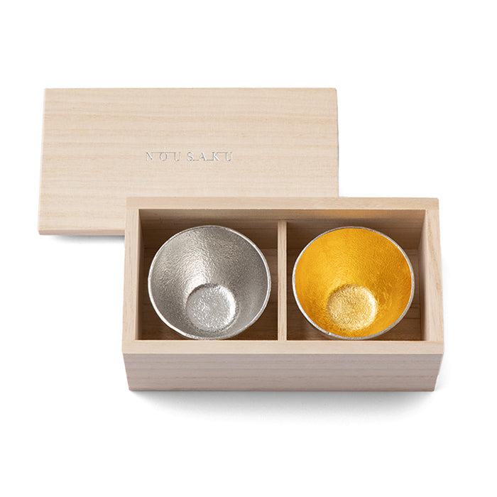 【和紙でラッピング済】 能作 ぐい呑 錫 ・ 金 2個セット 桐箱入