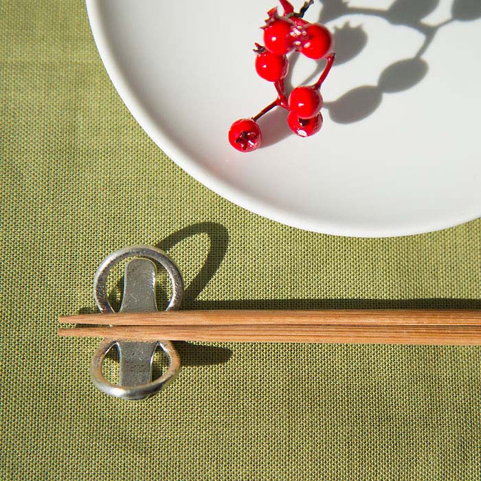 錫は、抗菌作用があり食器として安心してお使いいただけます。また、錫100%のためやわらかく、自由な発想でお好みの形状に変形させてご使用いただけます。通常の錫製品は硬度を持たせるため他の金属を加えますが、能作では何も加えず、錫本来の持ち味を最大限に生かしました。箸置きとしてだけでなく、カード立て等にもご利用いただけます。