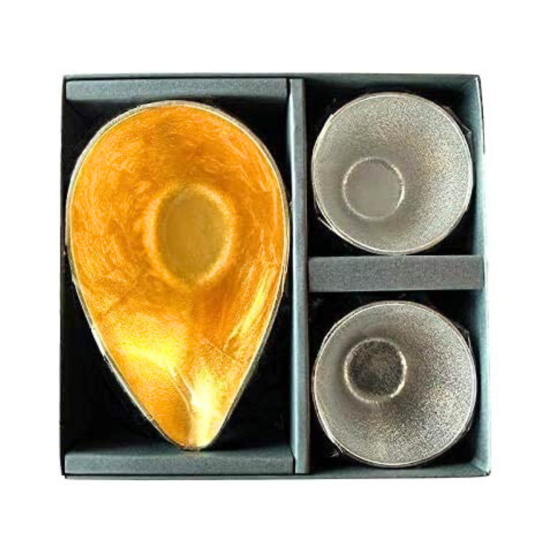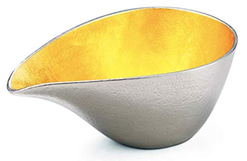 錫100%片口・金箔1ヶとぐい呑 錫2ヶのセットです。 金箔の輝きがより一層日本酒をひきたてます。錫は古来より、「錫の器に入れた水は腐らない」、「お酒の雑味が抜けて美味しくなる」などといわれ、酒器や茶器などに用いられてきた金属。また、熱伝導率が良いため冷蔵庫に1-2分入れることで器自体が冷たくなり、冷酒がより一層おいしくお楽しみいただけます。 和紙でラッピングしております。 つ一つ職人が手作業で仕上げています。贈り物にもおすすめの商品です。
