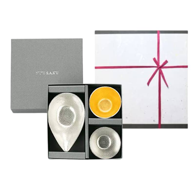 能作の片口とぐい呑のセットは、サイズや個数、デザイン、箱仕様により、様々な組み合わせがあります。詳しくは以下ページをご覧くださいませ。