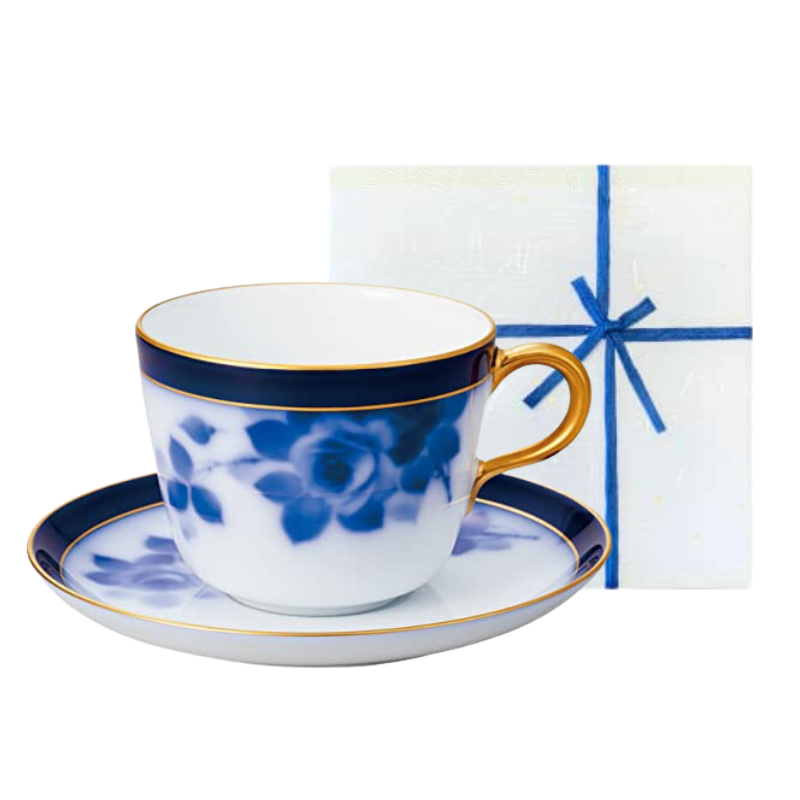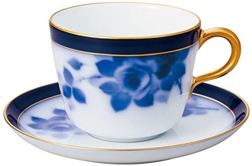 【和紙でラッピング済】 大倉陶園 100周年記念ブルーローズ モーニングカップ&ソーサー 26C/8011-R