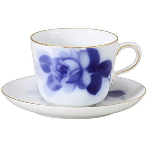 【和紙でラッピング済】 大倉陶園 ブルーローズ モーニングカップ & ソーサー 8211