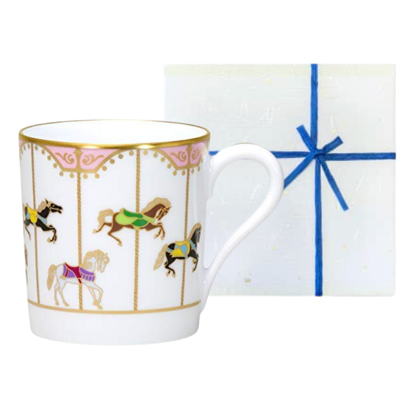 【和紙でラッピング済】 大倉陶園 うまくゆく 回転木馬 ピンク マグカップ