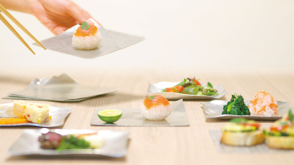 13×13は、取り皿として使用したり、和菓子屋小さなお料理をのせるのに丁度よく、テーブルシーン以外でも様々な使い方が出来る大きさです。